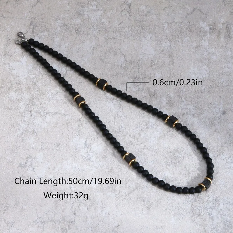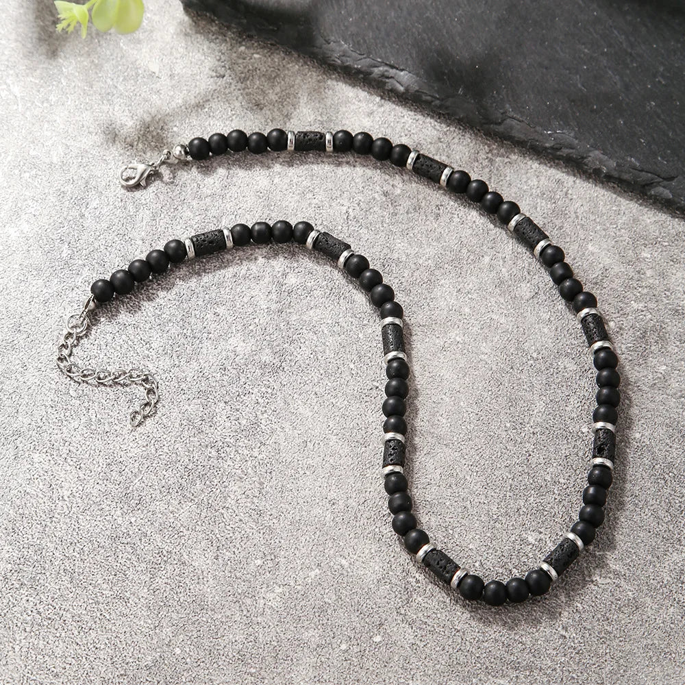 1PC Fashion Vintage Black Beaded Necklace for Men Lava Stone Necklace Men Jewelry
