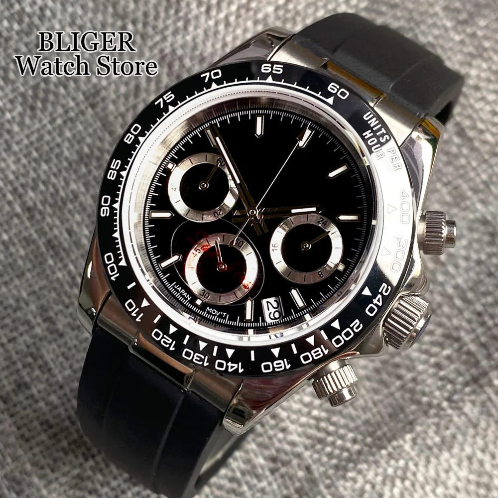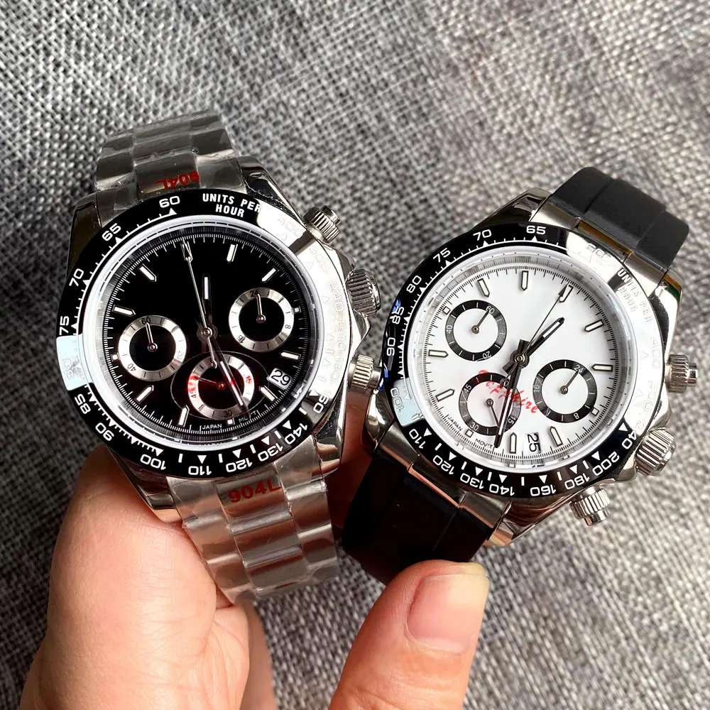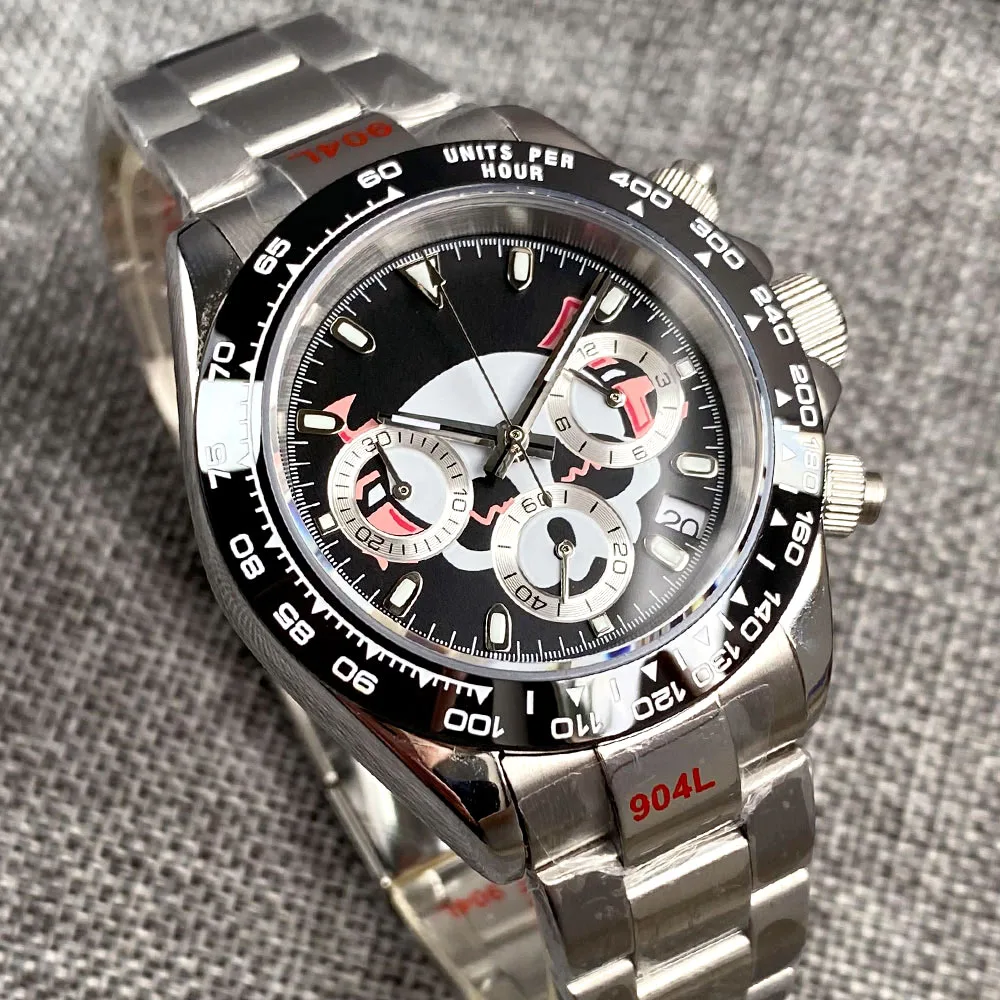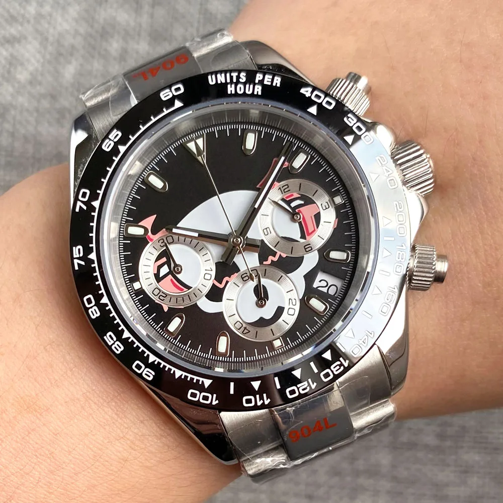 Fashion 39mm Quartz Chronograph Sapphire Crystal Men's Watch VK63 Cartoon Printing Pattern Stainless Steel White Black Dial