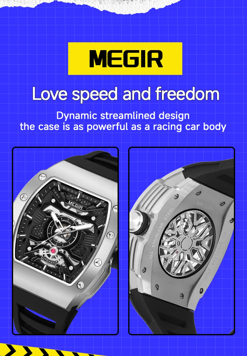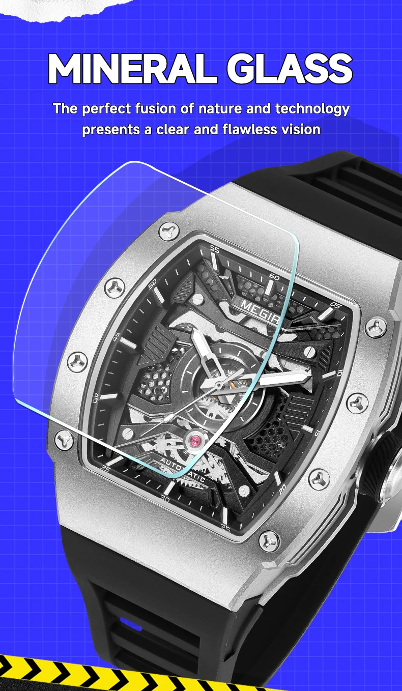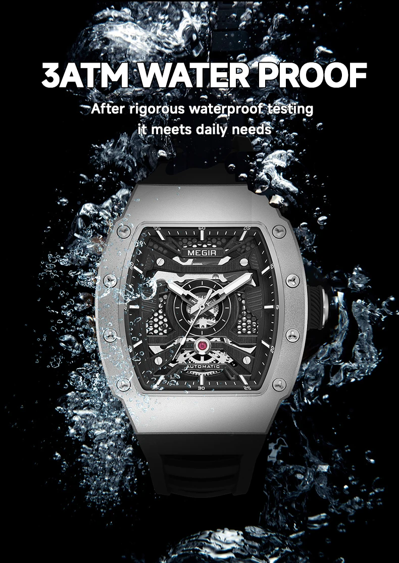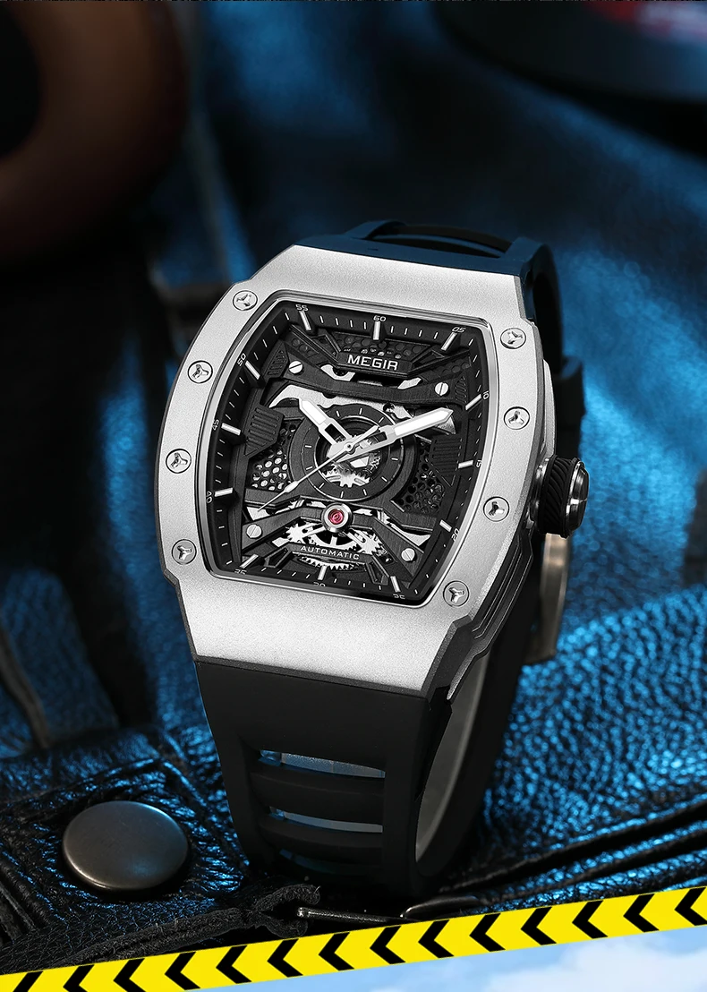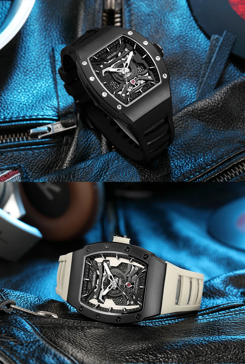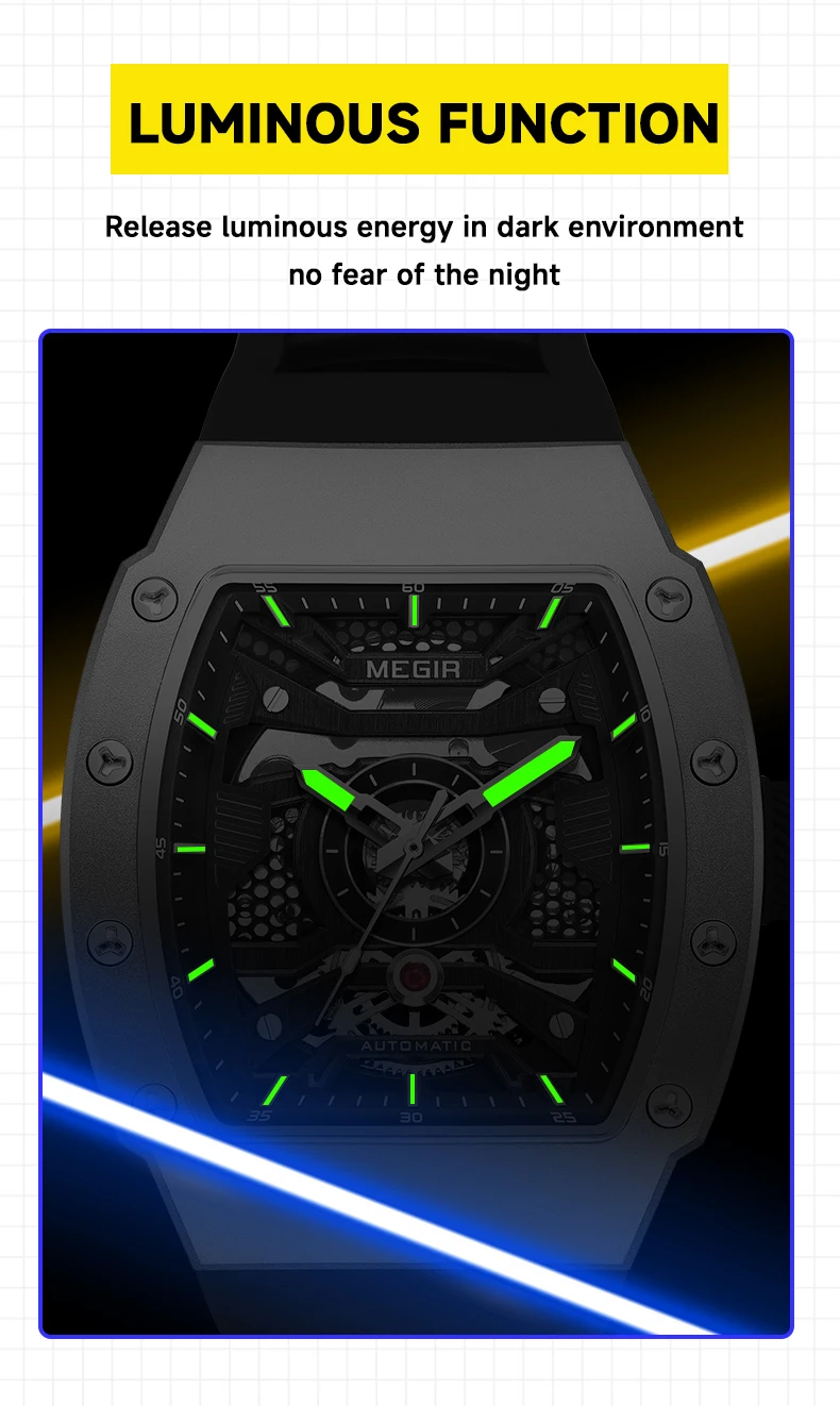MEGIR Mens Watches Skeleton Mechanical Automatic Wristwatches Luminous Waterproof Large Dial Casual Watch Clock Gift for Men