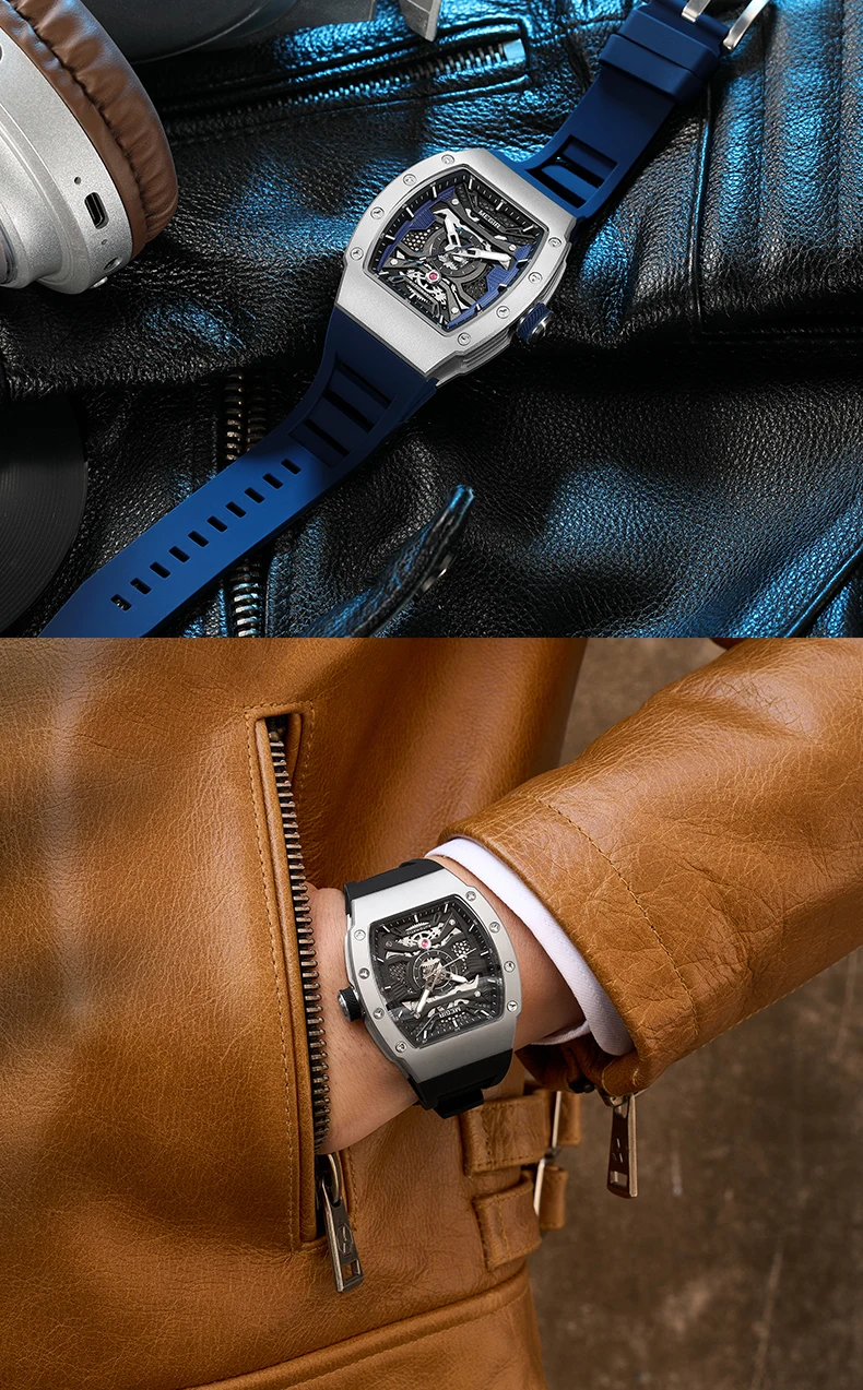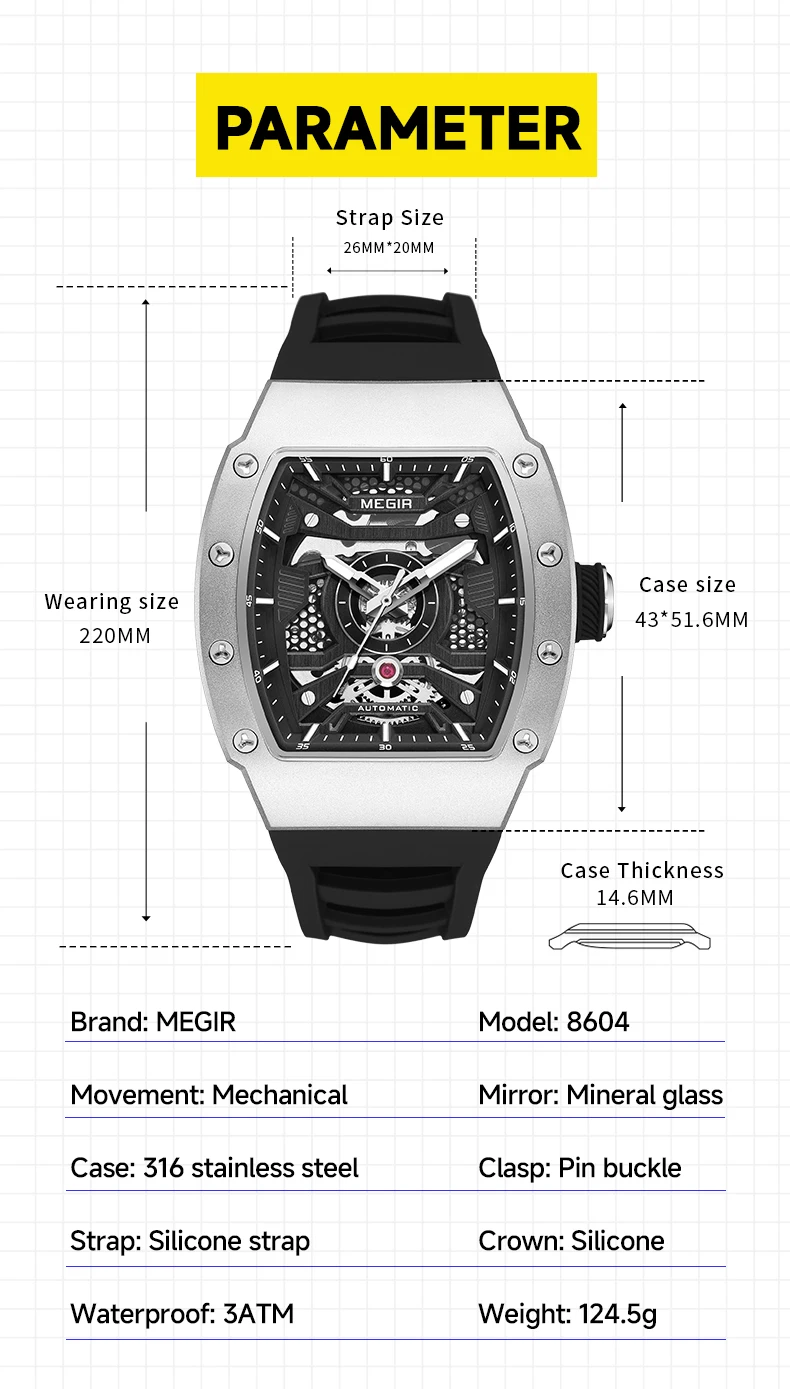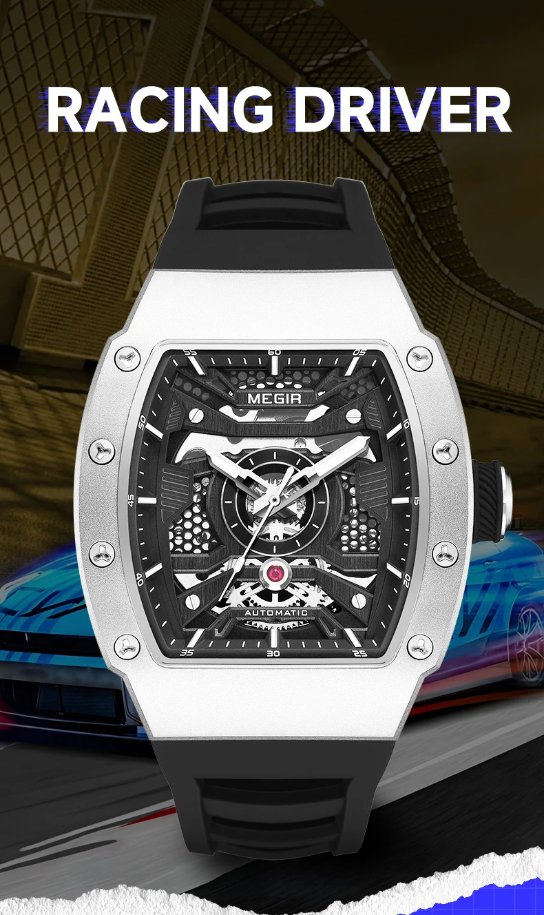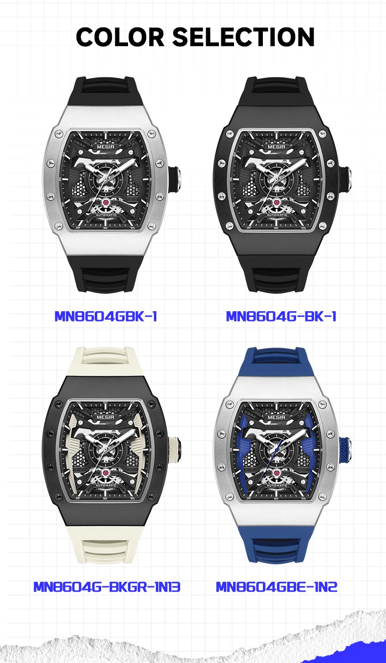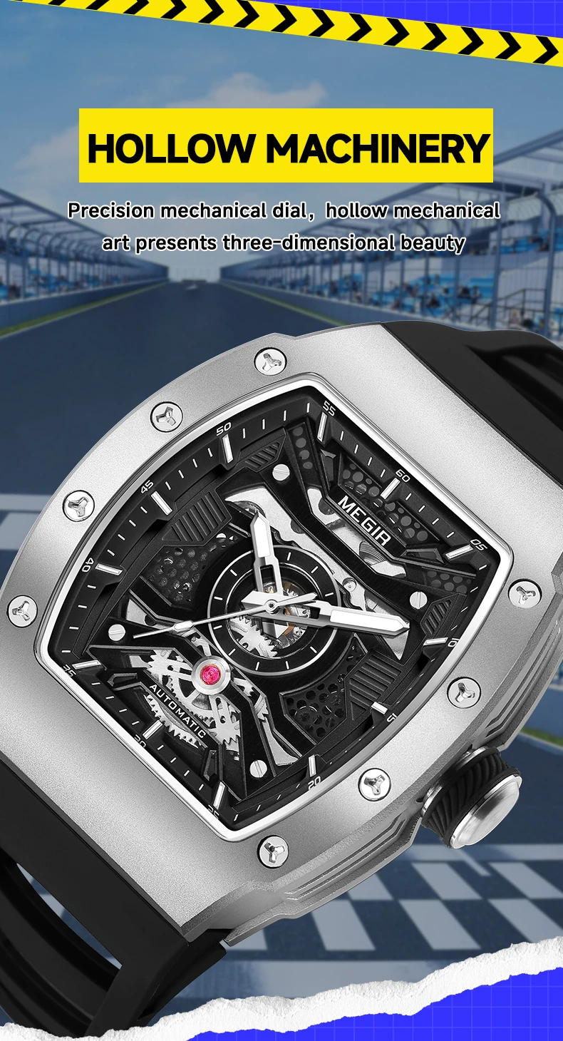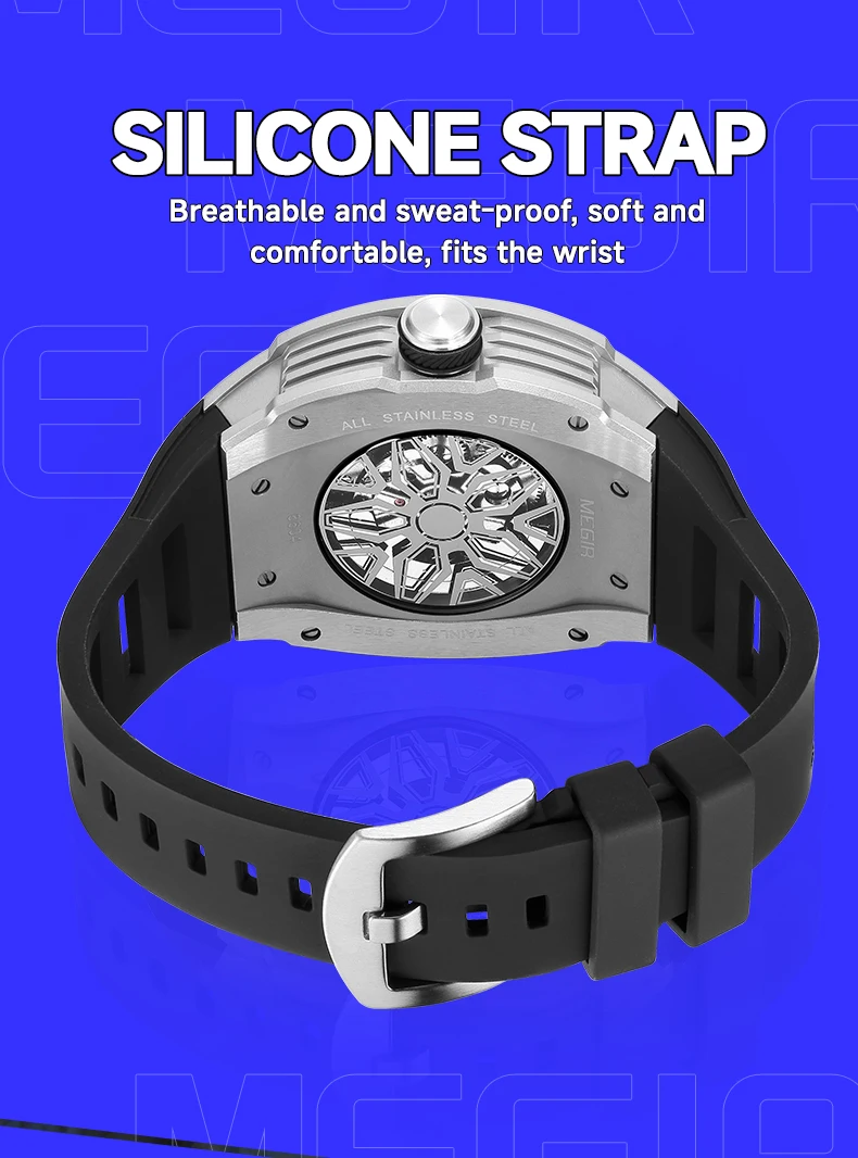 MEGIR Mens Watches Skeleton Mechanical Automatic Wristwatches Luminous Waterproof Large Dial Casual Watch Clock Gift for Men