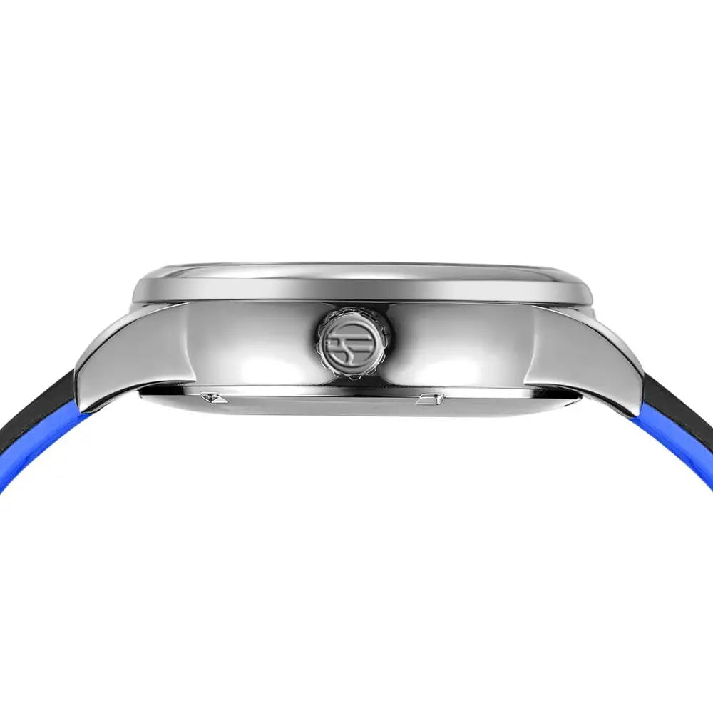 Transparent skeleton dial meets rugged silicone band. Built for action, styled for attention.