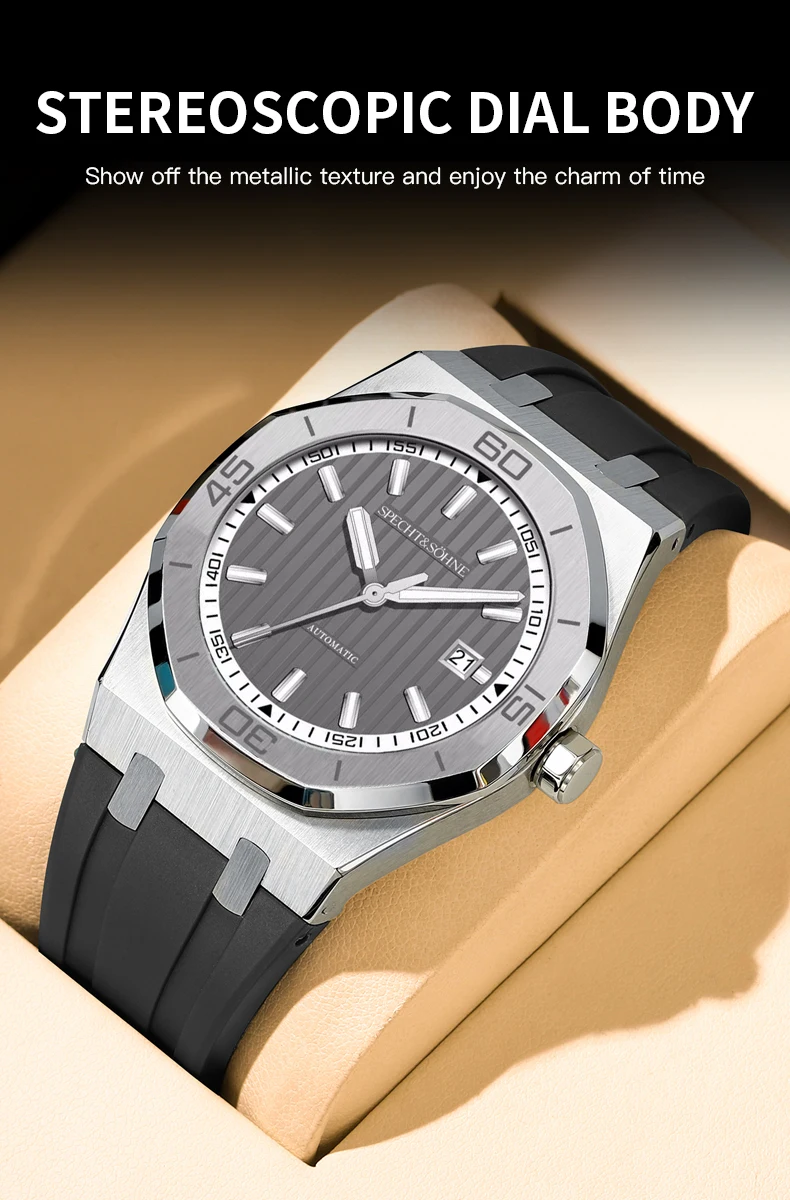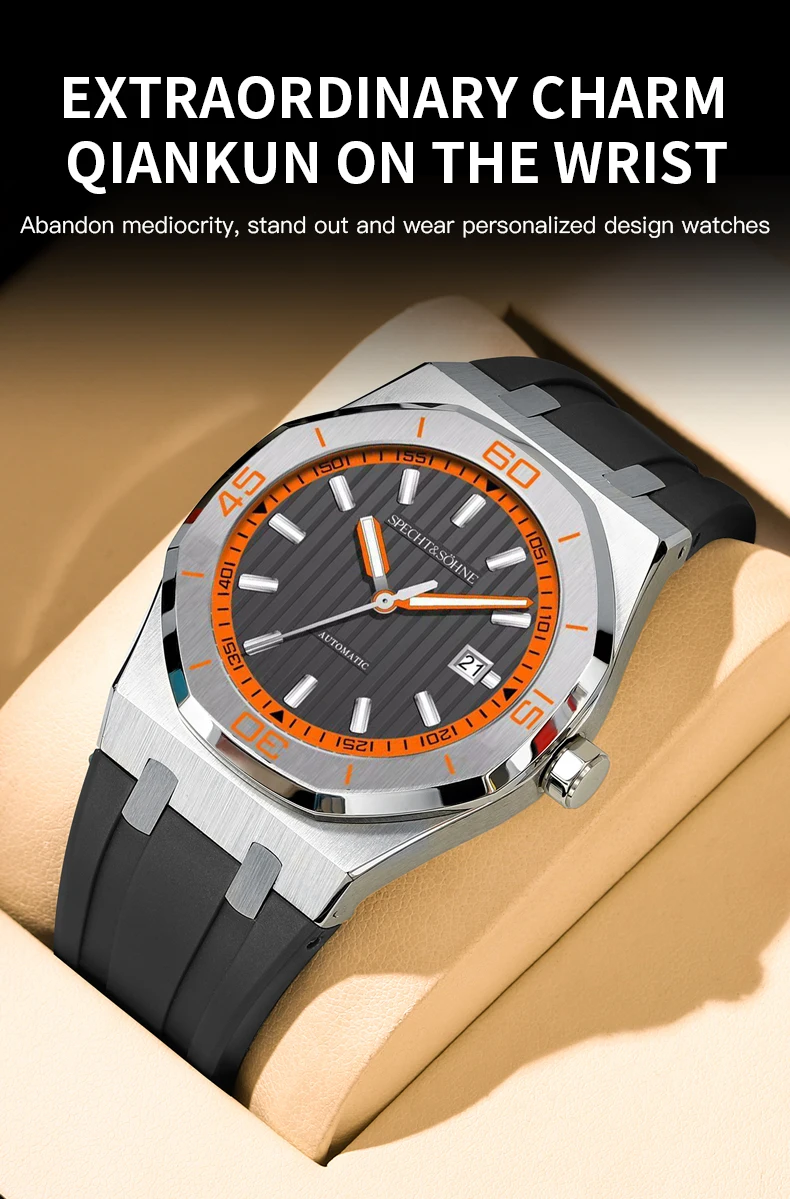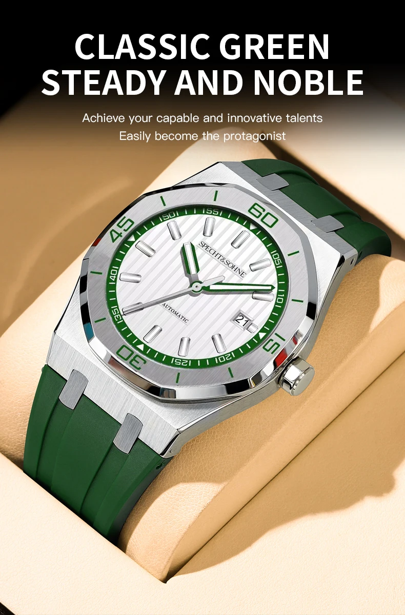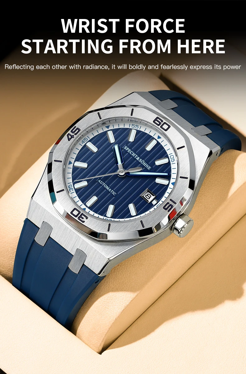 Specht & Sohne New 40mm Men Automatic Mechanical Watches Men Luxury Stainless Steel Watch Rubber Relogio Masculino Waterproof