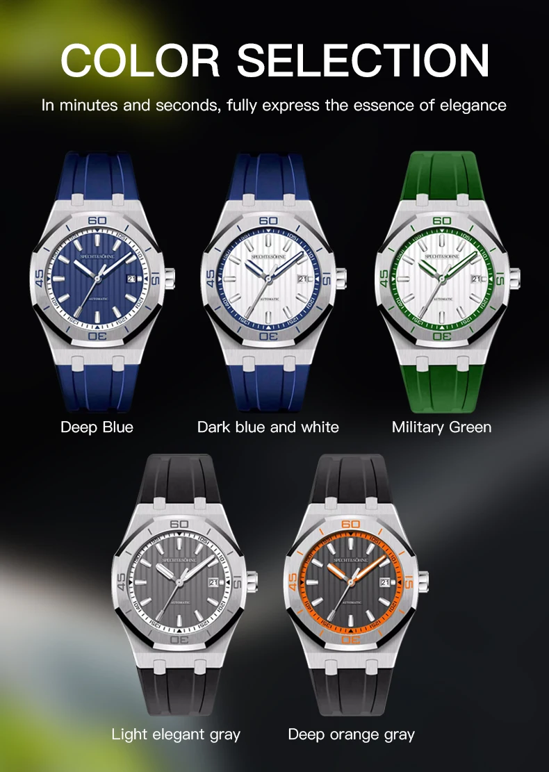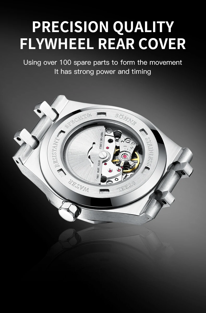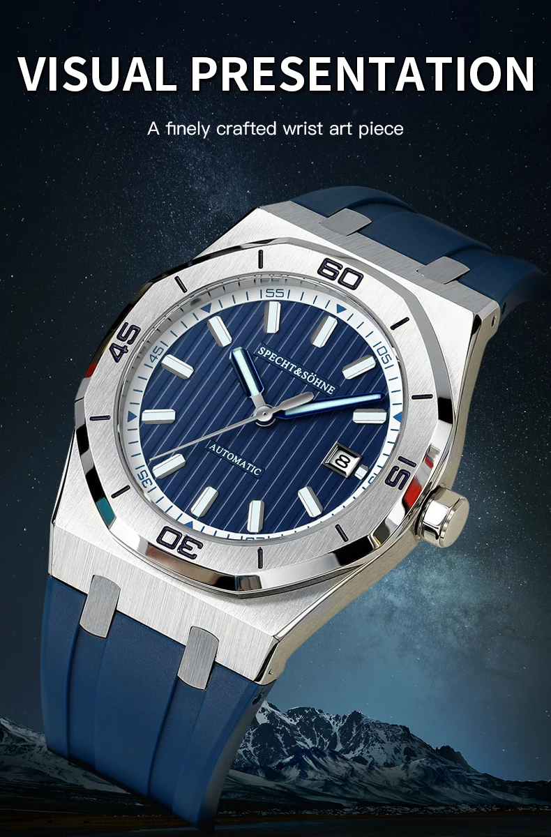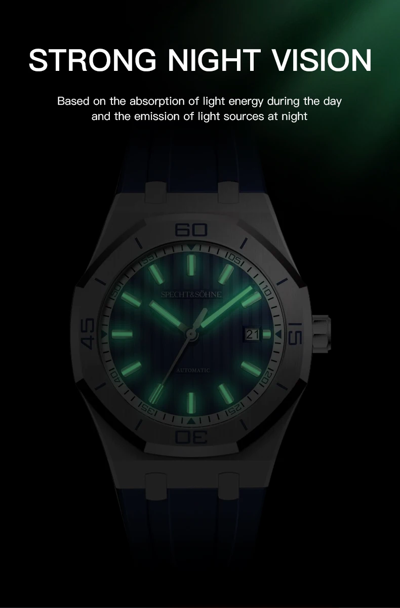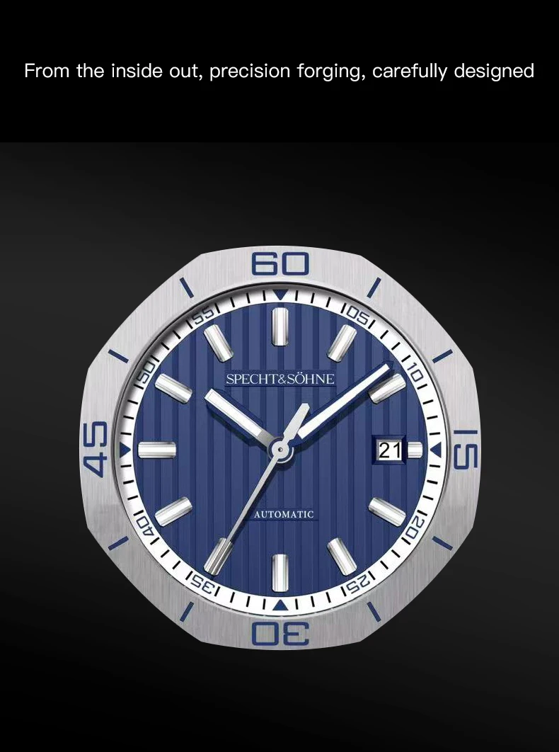 Specht & Sohne New 40mm Men Automatic Mechanical Watches Men Luxury Stainless Steel Watch Rubber Relogio Masculino Waterproof