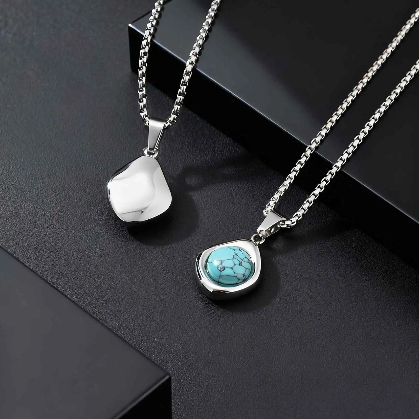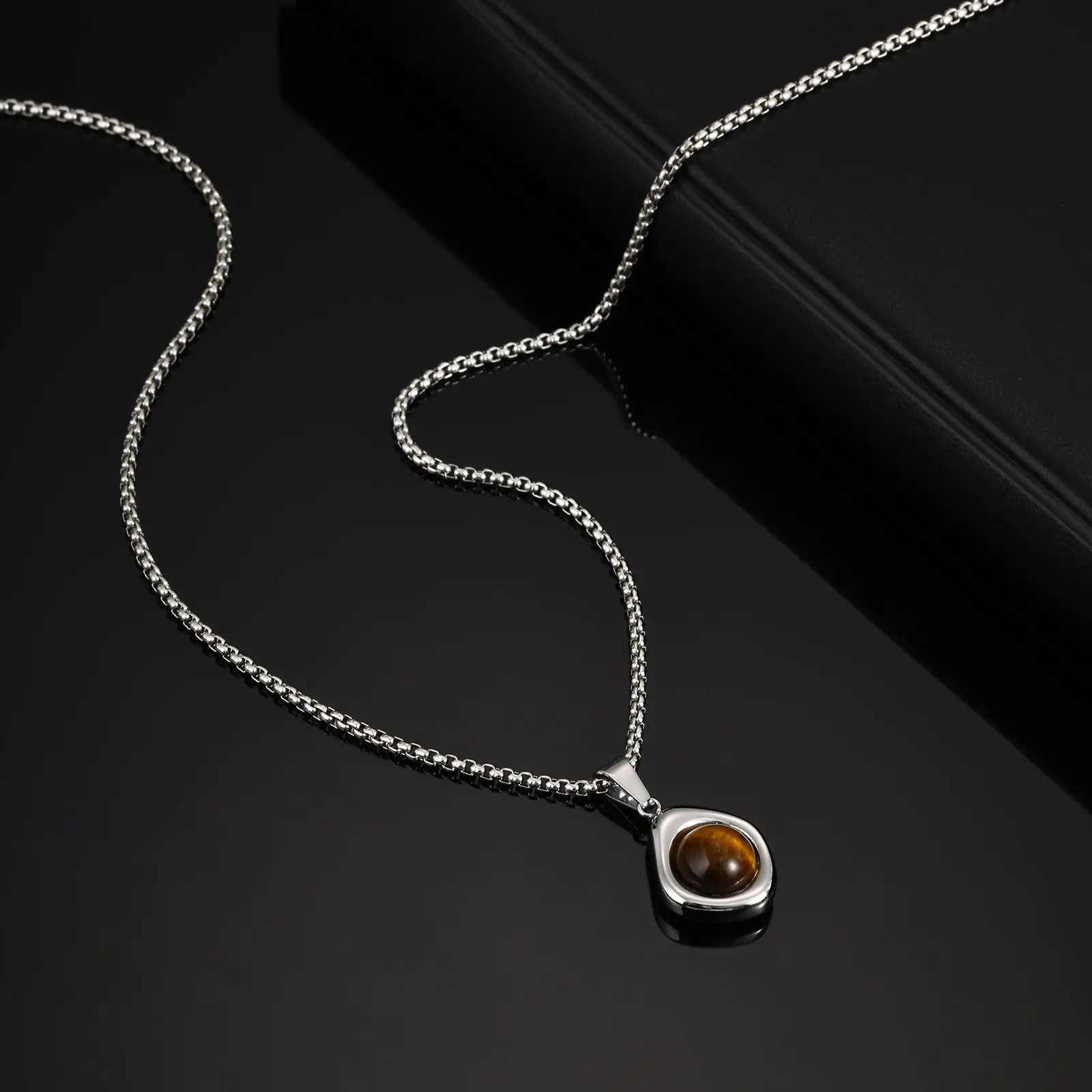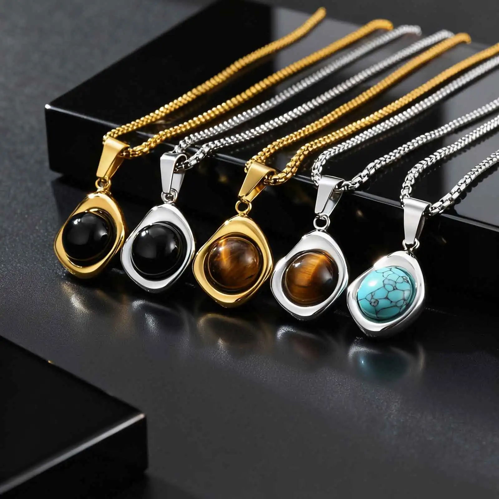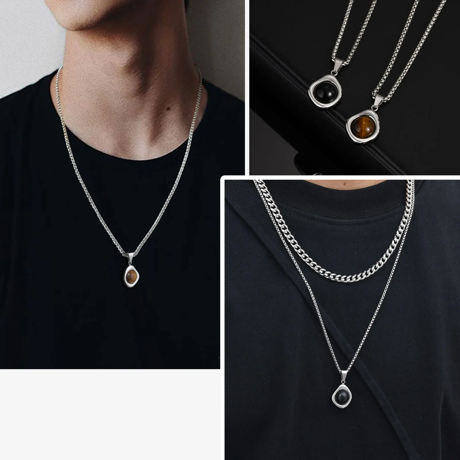 Stainless Steel Irregular Pendant Necklace for Men, Vintage Natural Agate Tiger Eye Stone Necklace, Fashion Punk Jewelry Gift